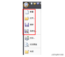 ①打开主菜单选择“新建”、“打开”或“保存”选项。