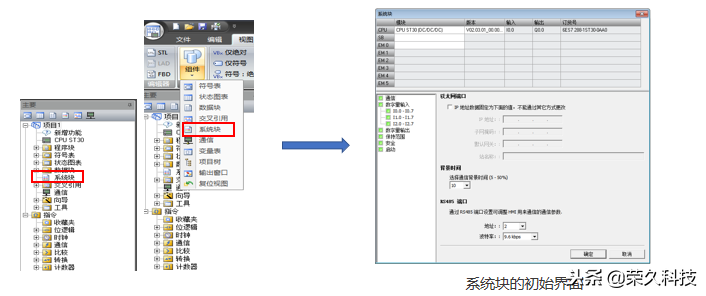 S7-200 SMART CPU、信号板和扩展模块需要的所有硬件组态都在系统块中配置。双击项目树中的CPU图标,或者选择“视图”→“组件”→“系统块”,打开“系统块”对话框。