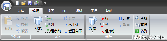 “编辑”菜单主要包含对项目程序的修改功能,包括剪贴板、插入、删除程序对象以及搜索功能,如下图所示: