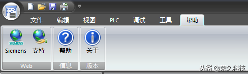 “帮助”菜单包含软件自带帮助文件的快捷打开方式和西门子支持网站的超级链接以及当前的软件版本,如下图所示: