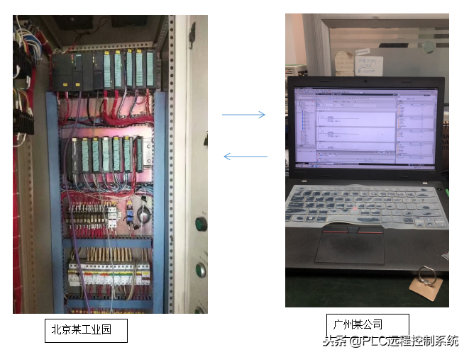 远程上下载PLC程序指的是:工程师没有在项目现场,没有在西门子PLC旁边的时候,想要通过异地远程来上传或下载西门子S7-300的梯形图,如下图(西门子S7-300PLC控制器在北京现场,工程师在广州办公室)。