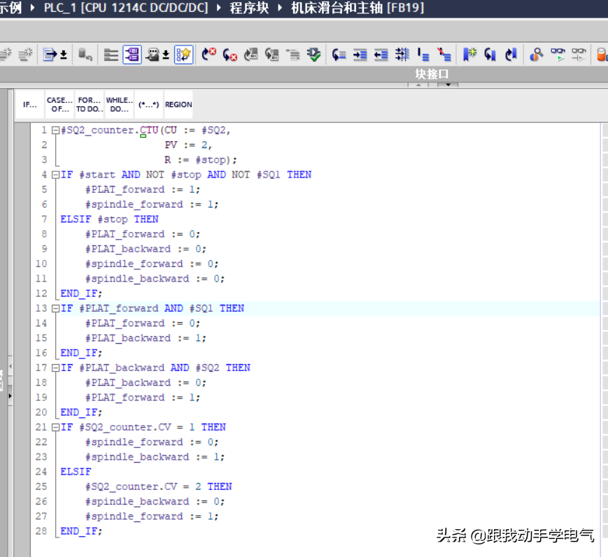 今天给大家带来的就是一个比较简单的机床滑台与主轴正反转控制的示例,通过这个示例来熟悉SCL编程的控制语句的使用和计数指令的调用问题。