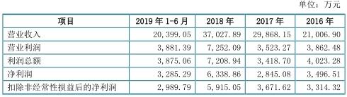 2017年,四会富仕净利润下滑。2016年至2019年1-6月,四会富仕实现营业收入分别为2.10亿元、2.99亿元、3.70亿元、2.04亿元,实现净利润分别为3496.51万元、2845.08万元、6338.86万元、3285.29万元。