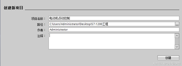 第三步:在选择“新建项目”后会出现如下菜单,可以继续设置项目的名称以及项目保存的位置,在填写完成后点击“创建”按钮。