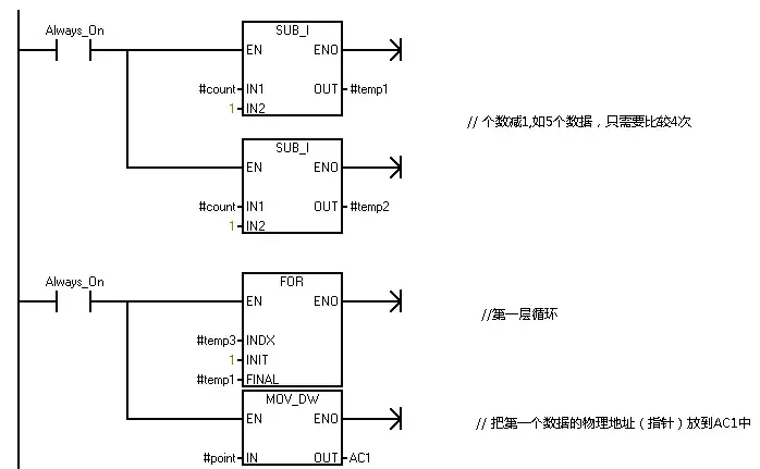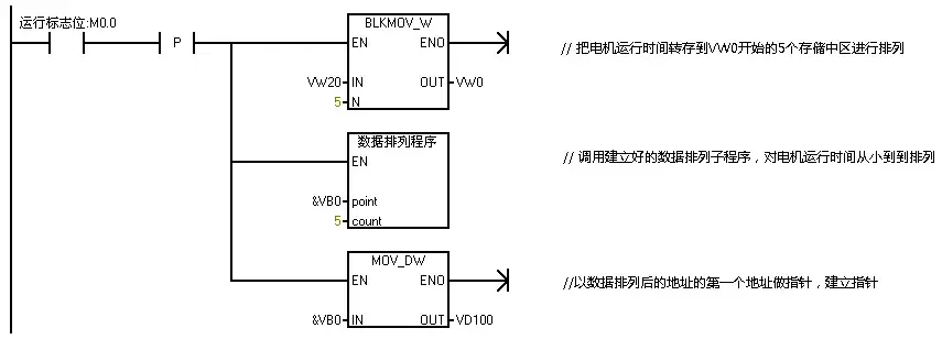 西门子S7-200系列的PLC中不像三菱的FX系列PLC具有数据排列的指令,因此我们要实现这个数据的排列功能,必须自己去搭建一个这样的功能块,在搭建这个功能块的时候,会使用到间接寻址和循环指令,同时还需要应用到带参数的子程序。那么如何编写一个数据排列的子程序呢?