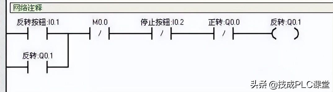 题意(2) 要求按停止按钮5秒后才能改变电机方向,所以这里需设置一个标志位,这里用M0.0。
