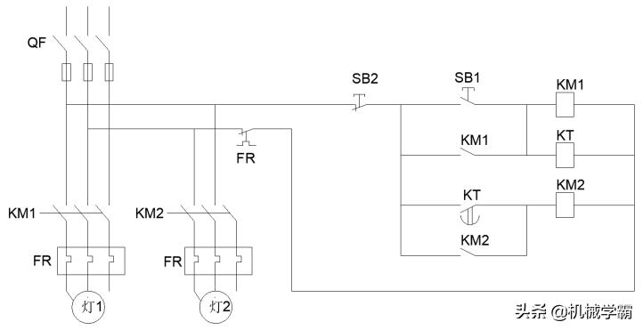 这次比上次复杂了一点点,两盏灯分时启动,因此,中间加了一个时间继电器,使用了时间继电器的通电延时触点。我们来看一下视频中的接线吧。自己动手会更嗨皮!