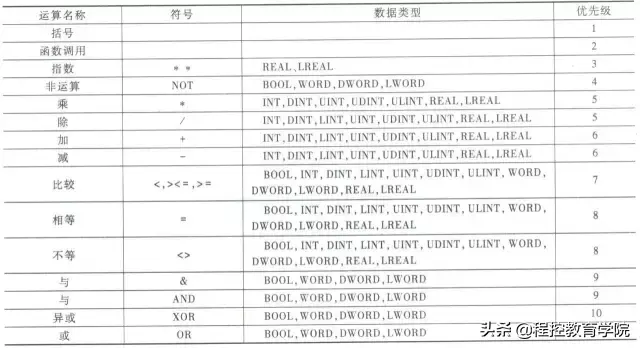 不同品牌PLC的ST语言所提供的函数、运算符可能略有不同。