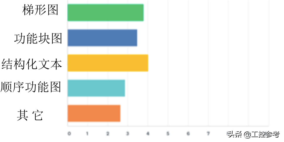 (1)各种编程语言运用的差距并不大,没有特别多的,即使居第一的结构化文本也不过比居于第五的其它语言多得有限。