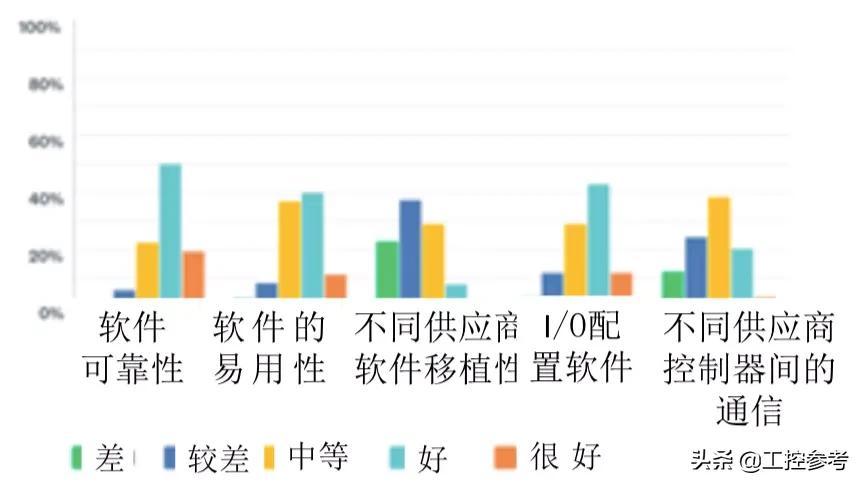 调查从软件的可靠性、软件的易用性、不同供应商软件平台所编制的应用软件的移植性、I/O配置软件和不同供应商的PLC控制器之间的通信等5个方面征询意见。
