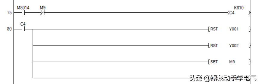 这里用到的指令是RST复位指令和初始化脉冲M8002