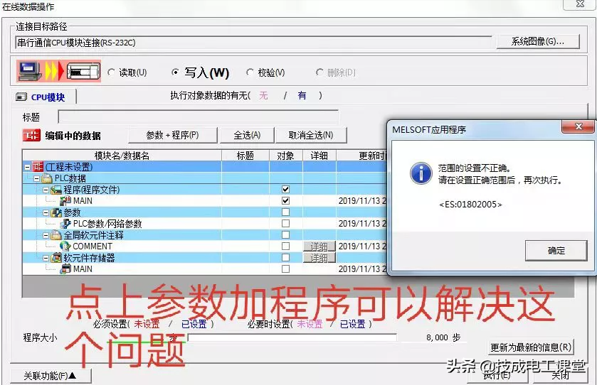 问:无法读取或写入大于存储卡容量的数据,请确认plc参数存储容量的设置