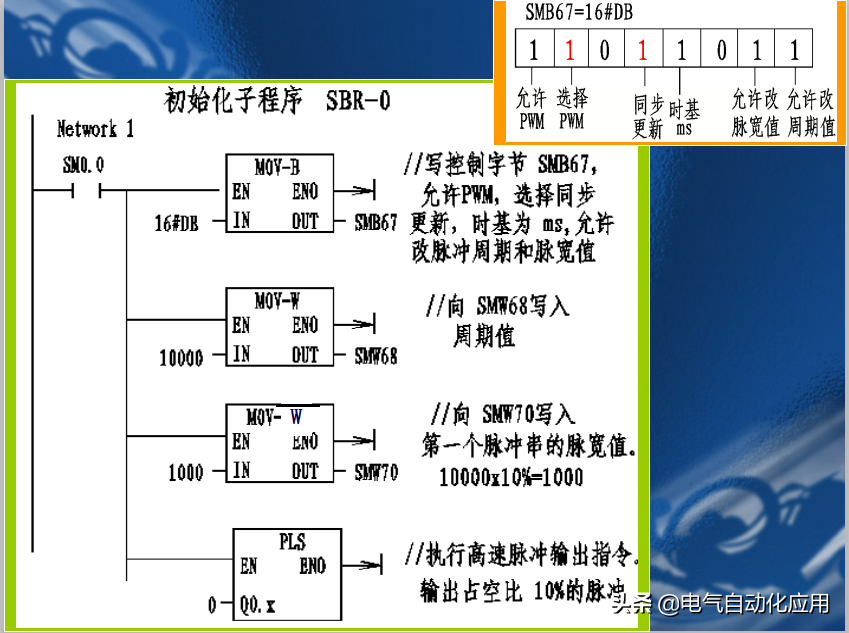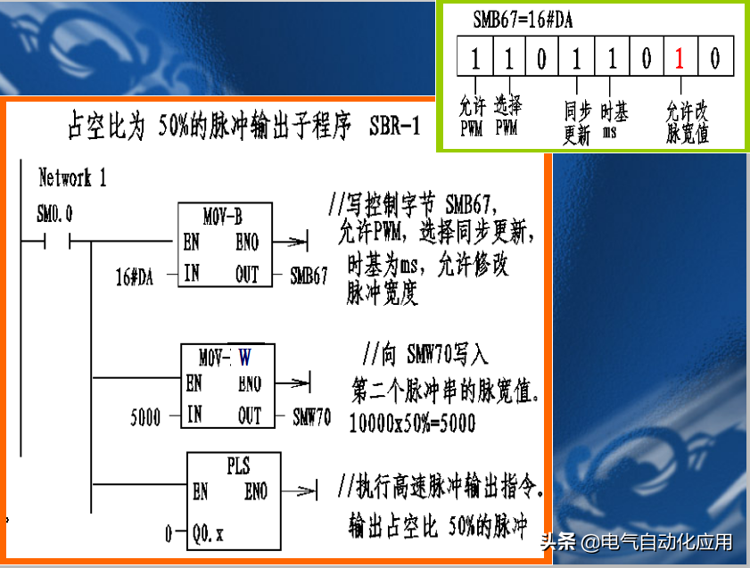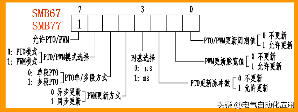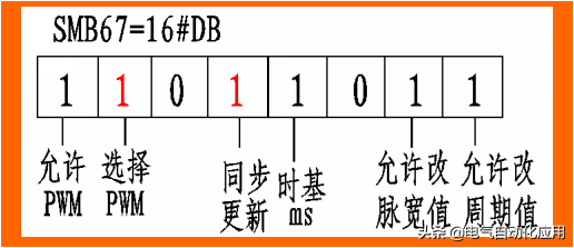 ● 改写控制字节SMB67,将允许改脉宽值位置1 ,其它位不变。