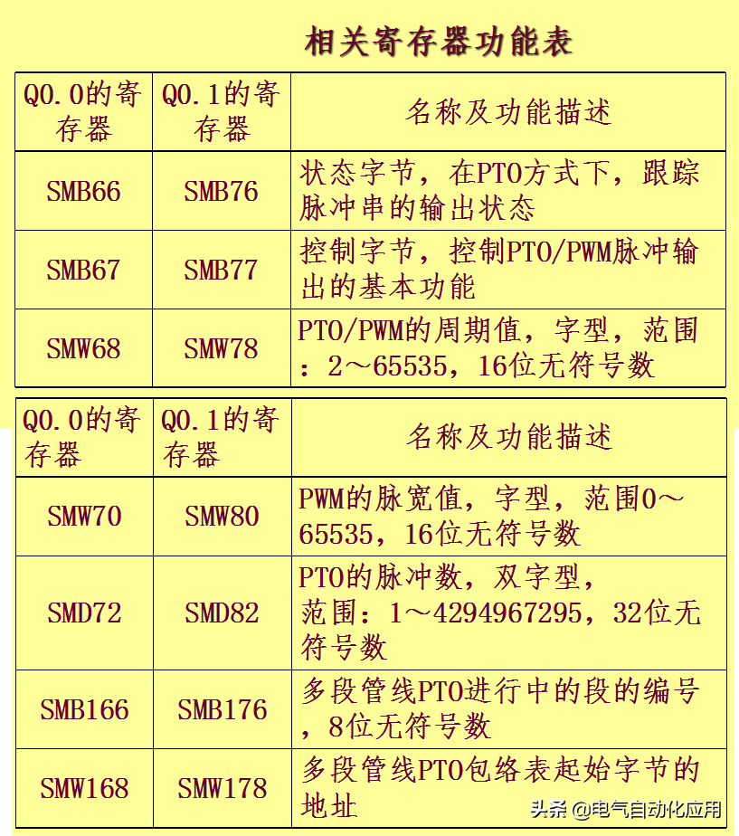 多段PTO操作时,需把包络表的起始地址装入标志寄存器 SMW168(或SMW178)中。