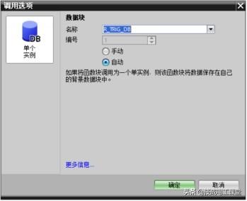 R_TRIG是检测信号上升沿指令,F_TRIG是检测信号下降沿指令,这两个指令其实是FB块,我们在使用的时候是需要给它分配背景DB块的,调用的时候,也会自动弹出下图这个页面。