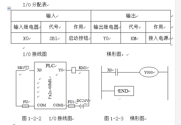 2、参照例题把下例的电气原理图,写出I/O分配表、画出I/O接线图,并转换成梯形图;并根据I/O接线图接好线。