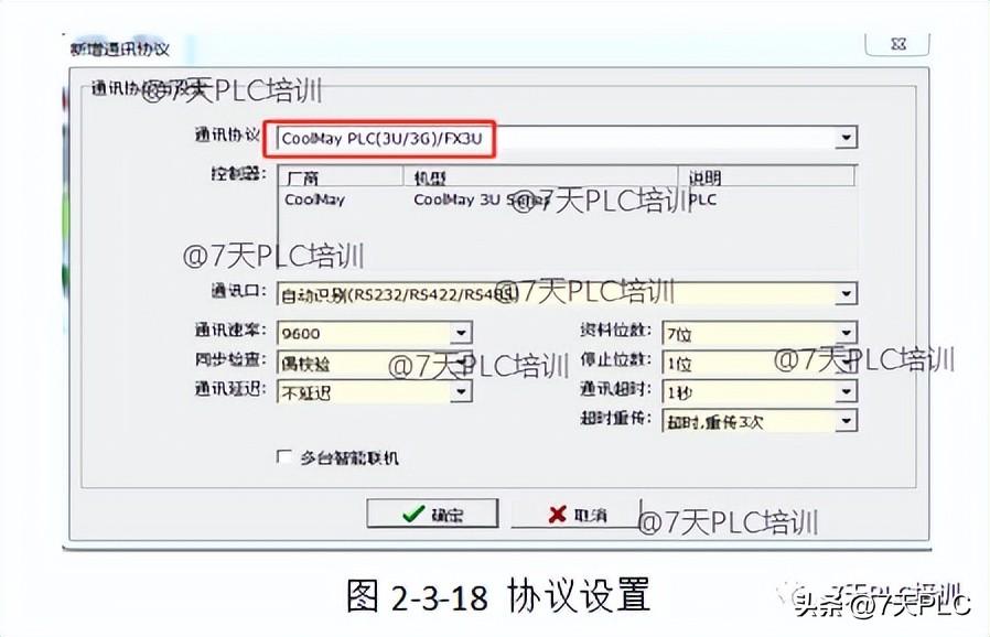 1、我们需要在触摸屏中添加对应的PLC协议才能让HMI和PLC连接起来 ,点击项目-通讯管理-新增协议-选择如图所示协议即可。
