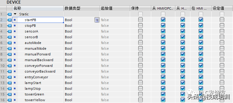 为便于后期修改,我们把外围设备统一做成DB块,如图: