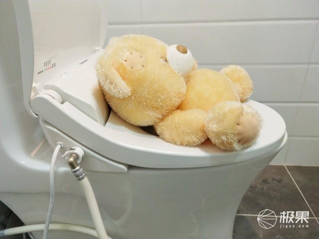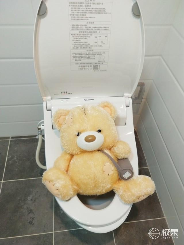 当然在这种场景真人出镜是不太可能的,我只能用可爱的小熊做模特来演示了,从小熊的姿态也可以感觉出这款马桶圈的舒适度。