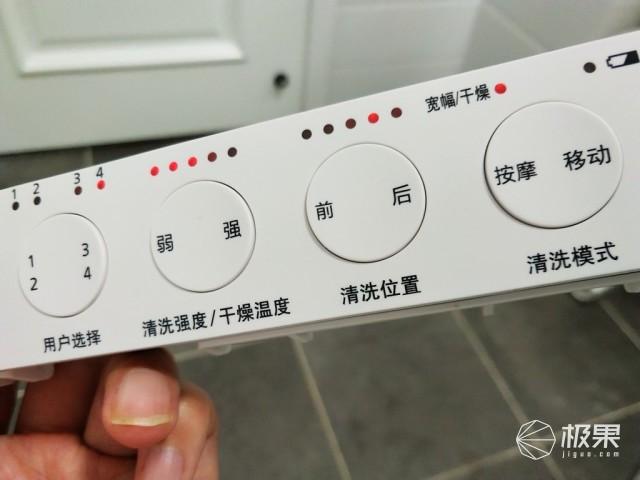 最实用的是,还可以把这些不同模式的使用习惯储存下来,为每个用户单独建立一套冲洗按摩套路,比如说我按下用户4,然后调节不同的清洗强度、清洗位置、温度等等,遥控器就会把这个设置记录在用户4下面,下次使用再选用户4就会使用以前保存的配置,做到个性化的功能。