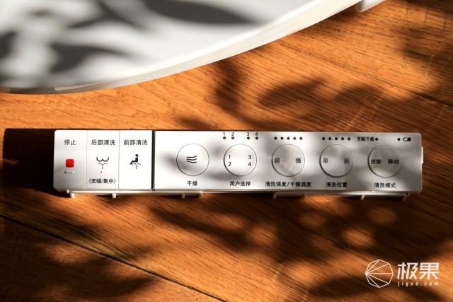 这个功能在卫生间灯光不足或者夜里上厕所时很有帮助,因为都是可以远程控制的,通过遥控器上的按键来开关,打开之后可以持续亮起12个小时。这几个按键藏在遥控器的中间层,推开就可以看到。在使用时,要提前打开便圈加热功能,加热到一定温度之后能够持续保温,这个功能的好处肯定在北方来暖气前几周和停暖气后几周的作用最为明显,体验过马桶圈冰凉感觉的人都会理解。