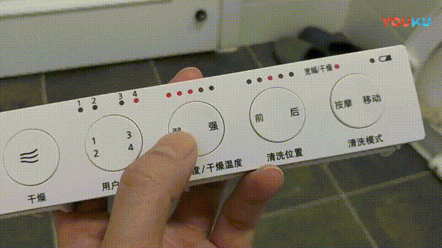 如果觉得水流的强度太大或太小,或者清洗位置有偏差,也可以通过遥控器面板上的按键进行调节,强度和位置的变化可以通过LED指示灯看得一清二楚。多档水洗模式,变着花样让人舒舒服服的解决个人问题。而且符合人体生理和卫生的特点,很是人性化。